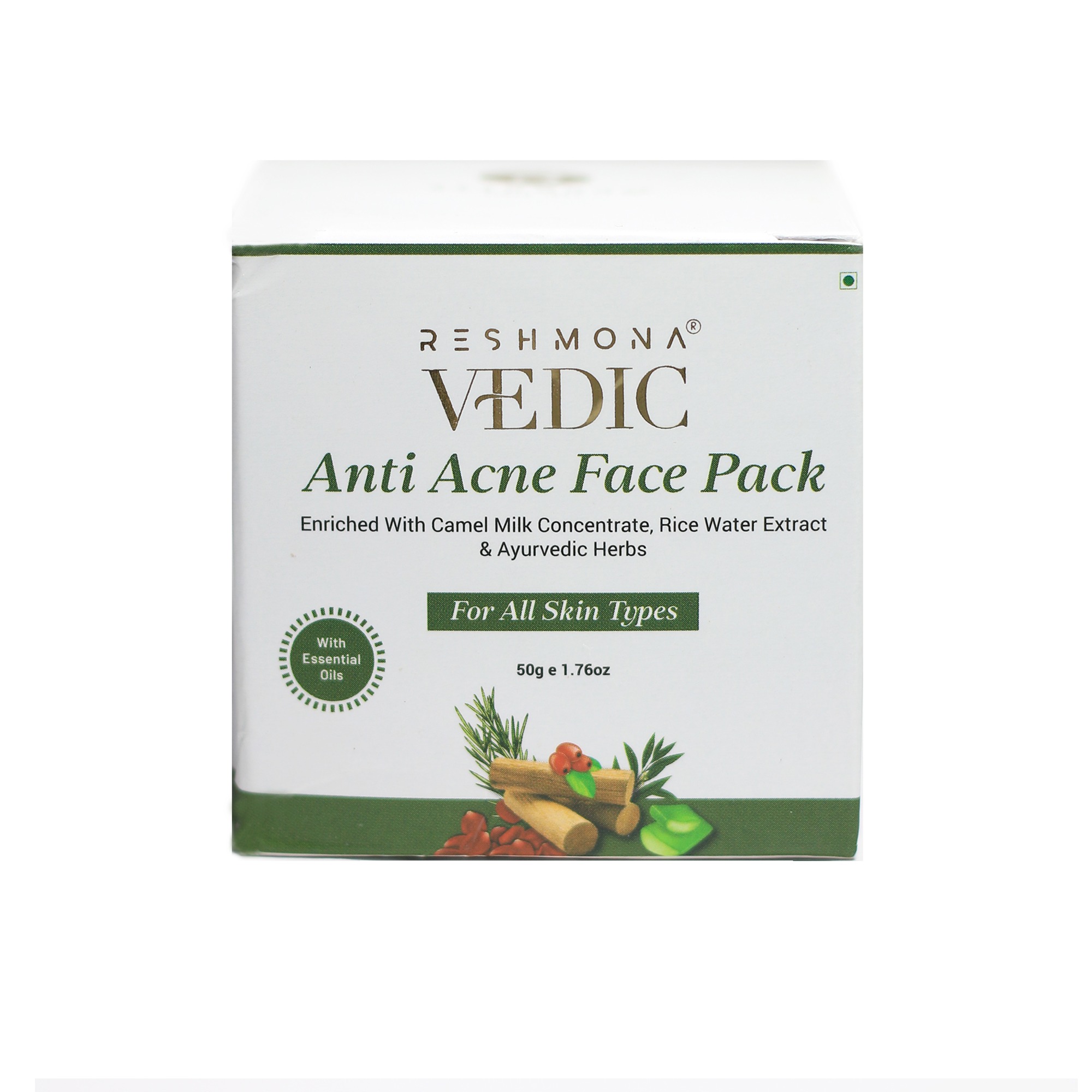 RESHMONA VEDIC Anti Acne face pack has potent handpicked natural anti-acne ayurvedic ingredients and essential oils. This wet pack has no chemicals and works as a treatment for acne and pimples. It helps unclog the pores and exfoliates the skin by removing dead cells, thereby reducing pimples. It is easily applicable, spreads evenly and maintains the right amount of moisture in the skin. It heals the skin, soothes inflammation and protects it from acne-causing bacteria.
